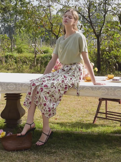 Classic tea skirt, one-piece wrap, fits the body curve, elegant and simple; romantic tulip printing, using watermark technology, natural and clear, soft color, not easy to fade; natural slits on the skirt & knotted straps at the waist, easy to put on and take off, magnifying the comfort and inclusiveness; the fabric is comfortable and skin-friendly, with good air permeability; lined