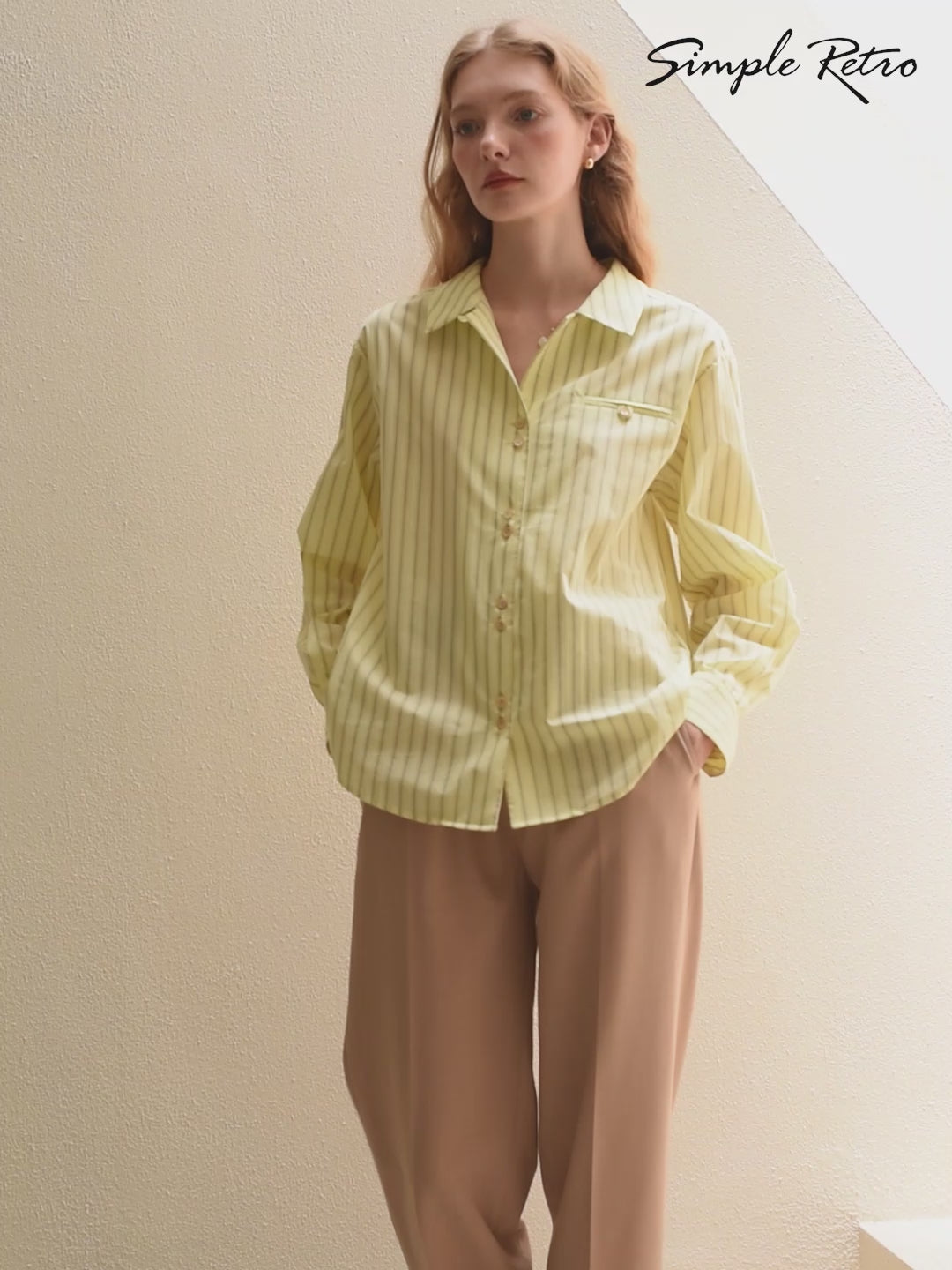 【Final Sale】Georgina Vintage Classic Suit Collar Striped Shirt