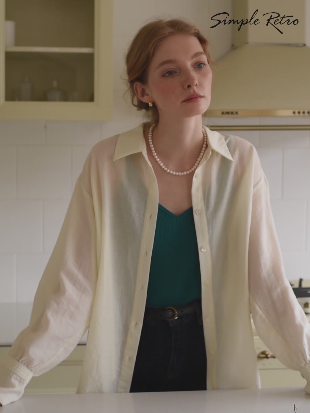 Detail | Straight fit, full of allowance, suitable for a variety of body shapes; widened neckline, comfortable and easy to create a sense of relaxation; loose sleeves, effectively modifying the arm line, one-button design, enriching the sense of sleeve design; short front and long back & side slit design, stretch the overall proportion from the side, visually slender figure; versatile semi-transparent texture, the finishing touch for matching; linen blend Fabric, natural fiber, comfortable and dry, delicate hand feeling, not easy to wrinkle, easy to store, cool and breathable |