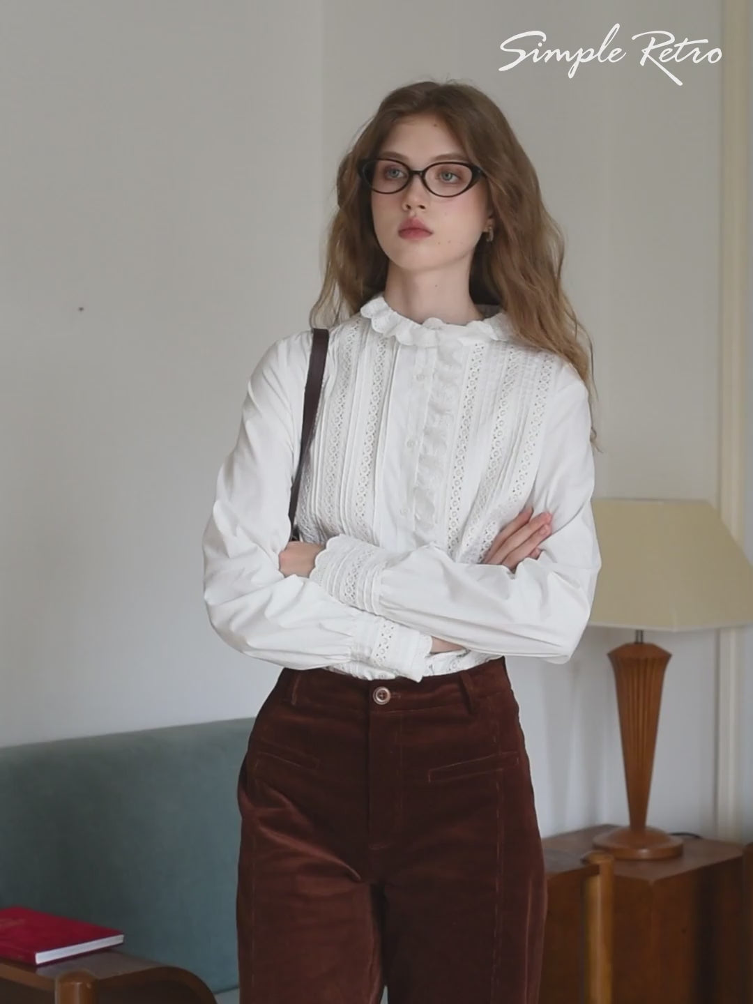 Journi Ruffle Collar Hollow 100% Cotton Blouse