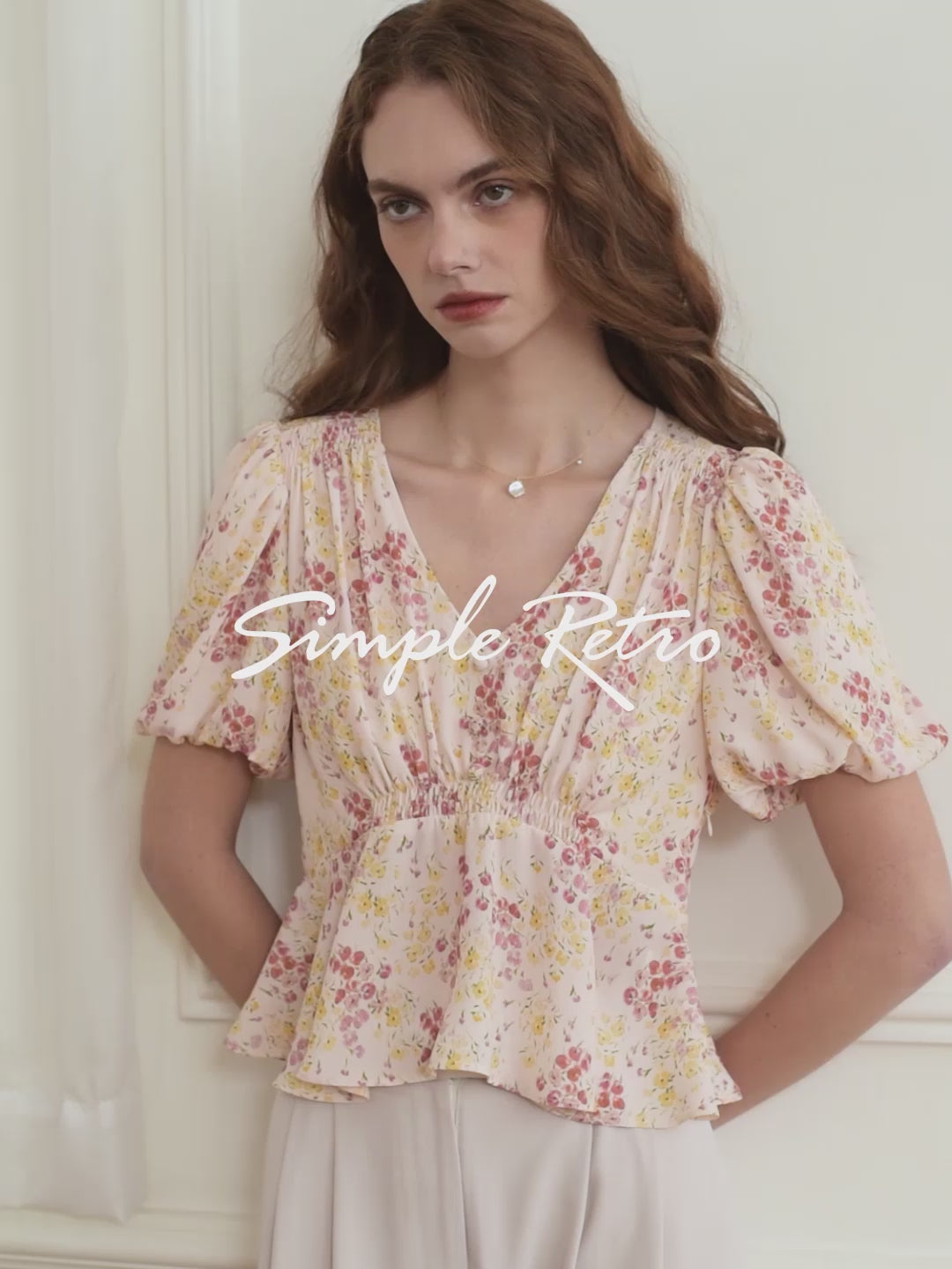 Detail | SR original printing pattern, patchwork, romantic and natural; comfortable to wear, modifying body proportions; fluffy sleeves, dreaming back to the romance of the 19th century; large V-neck design, outlines the slender neck curve; light texture, elegant and cool |