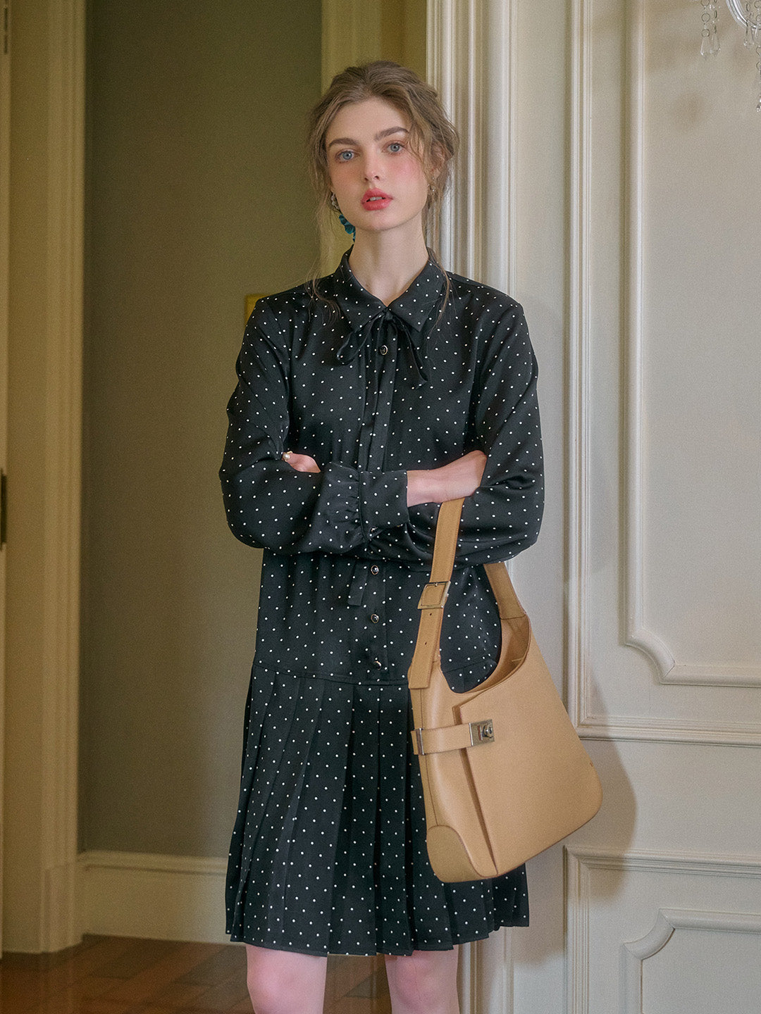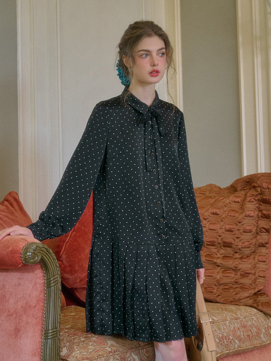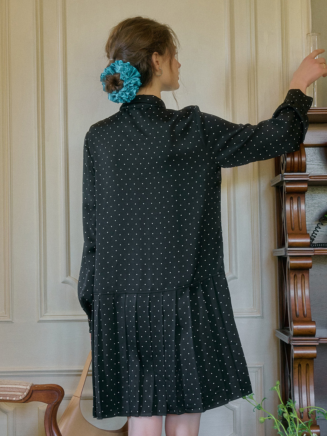 Violet Lapel Dots Pleated Dress
