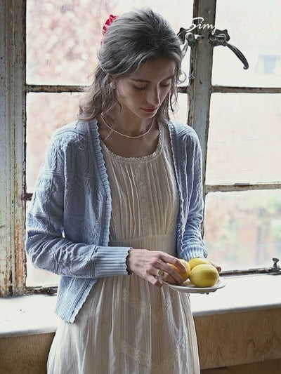 - search_phrase: "Simple Retro cardigan blue"