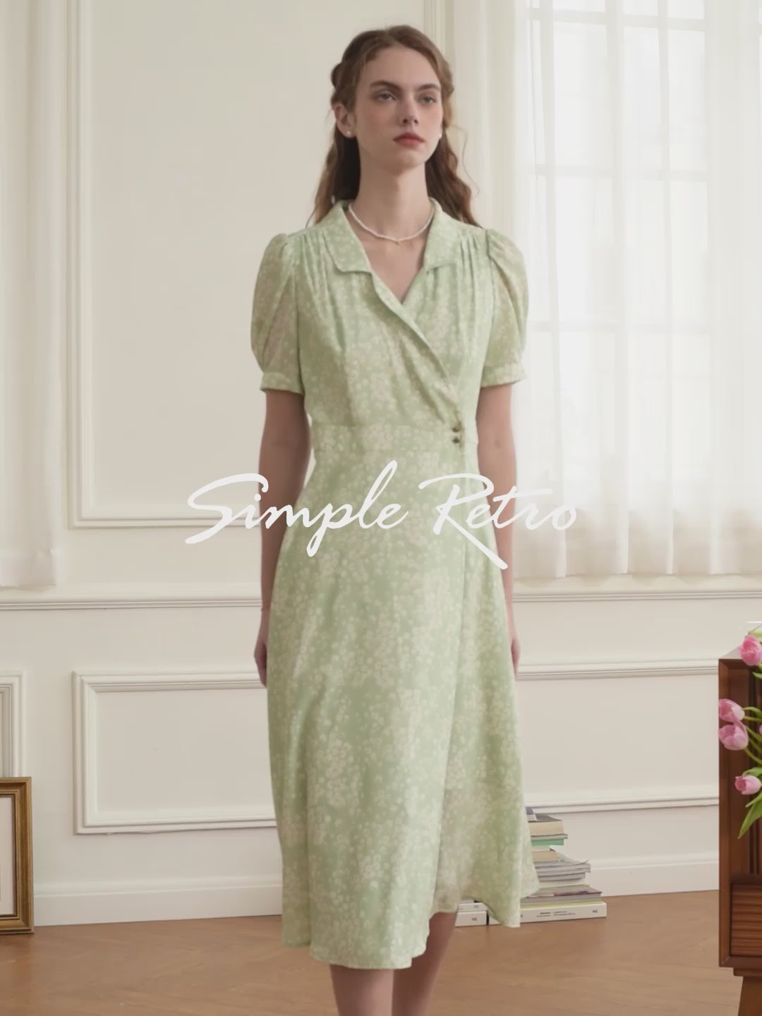 Detail | One-piece does not pick the body; easy to put on and take off, by virtue of comfortable and decent, elegant and generous; SR original print pattern, staggered, romantic and natural; waist enamel buckle & inside double-layer anti-walking ties design, free to adjust the dimension, not easy to walk out; V French small lapels, lengthen the neck curve; knee-length skirt, waist-waist cover crotch; lined |