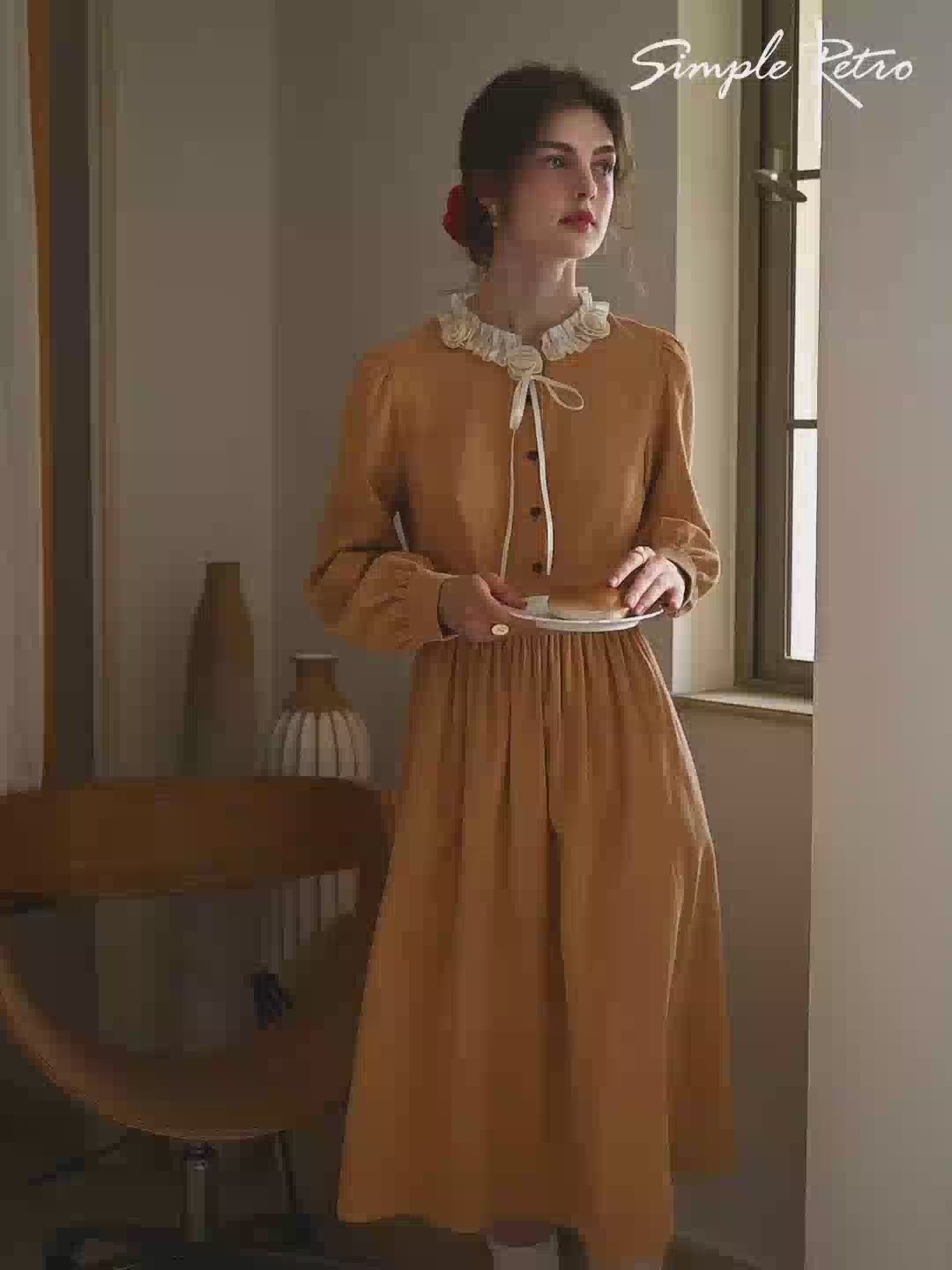 Amiri Romantic 3D Crochet Flowers Trimmed Corduroy Dress